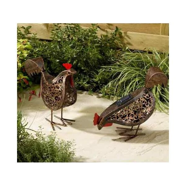 De set van 2 hanen met verlichting op zonne-energie is de ideale toevoeging voor elke tuin.
