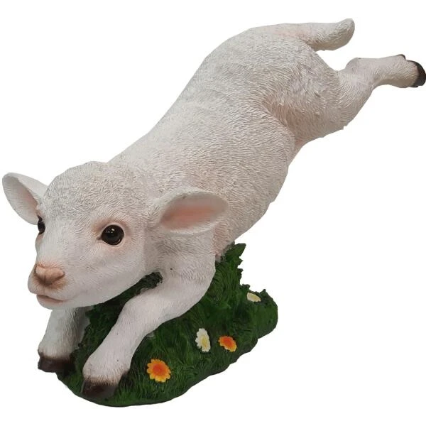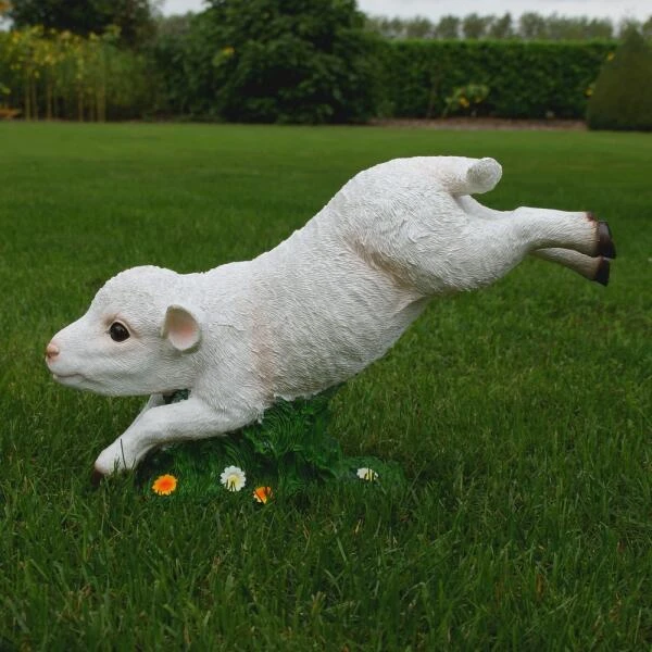 Plaats dit beeld op een centrale plek in het gazon of in een bloemenweide en het zal jong en oud vertederen. Het is heel decoratief en gemaakt uit polyresin, een duurzame kunsthars die bestand is tegen heel wat weersinvloeden. Het beeld kan dus zowel binnen als buiten worden geplaatst. Misschien kan dit lam wel een plekje krijgen op de kinderkamer?