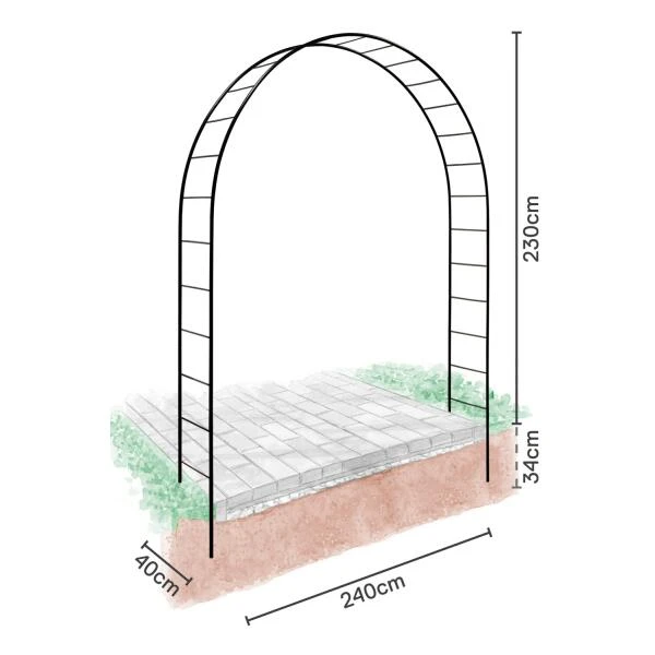 De rozenboog heeft een totale hoogte van 264 cm waarvan 34 cm kan worden verankerd in de grond. Zo blijft de boog ook bij wind stevig rechtop staan. Plaats de boog aan de inkom van je tuin of boven een wandelpad. Versier hem tijdens tuinfeesten met (droog)bloemen en verlichting en maak er een onvergetelijk feest van!