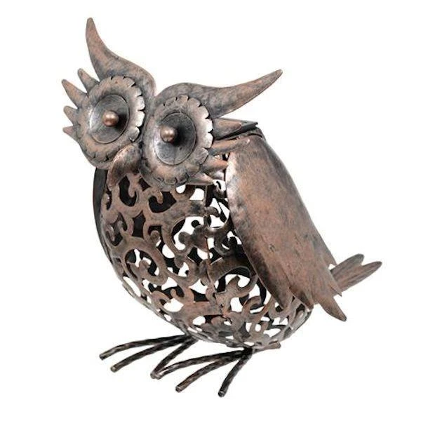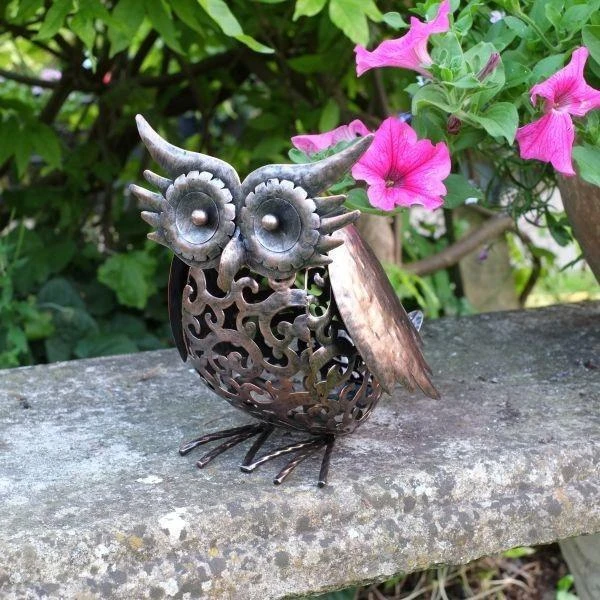 Als je graag een originele, kwalitatieve decoratie wil toevoegen aan jouw tuin, dan is deze metalen uil de perfecte keuze. De koperkleurige uil is voorzien van verlichting op zonne-energie zodat hij ook ’s avonds en ’s nachts jouw tuin verder zal opfleuren.