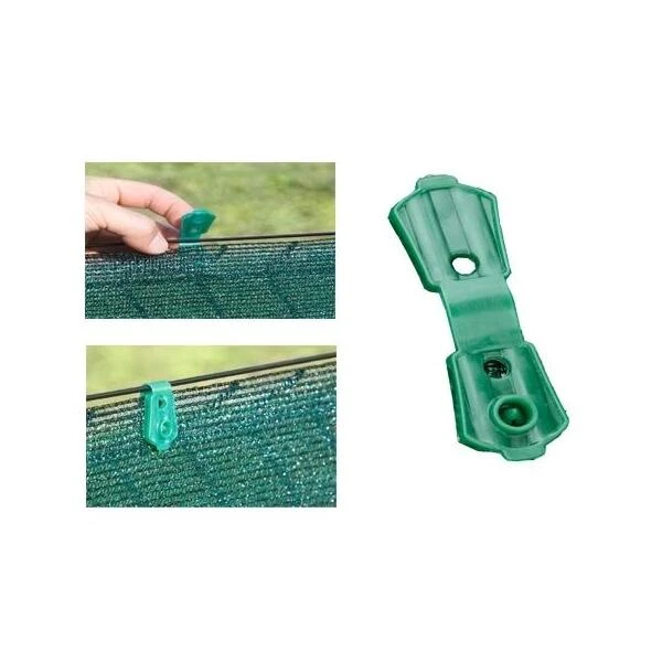 Vasthechtingsclips om allerlei netten op een zeer eenvoudige en snelle manier vast te kunnen maken. Klik deze clips over een spandraad heen op uw doek en deze laatste blijft netjes op zijn plaats hangen. Voor een goede strakke ophanging om de 50 cm een clip plaatsen.